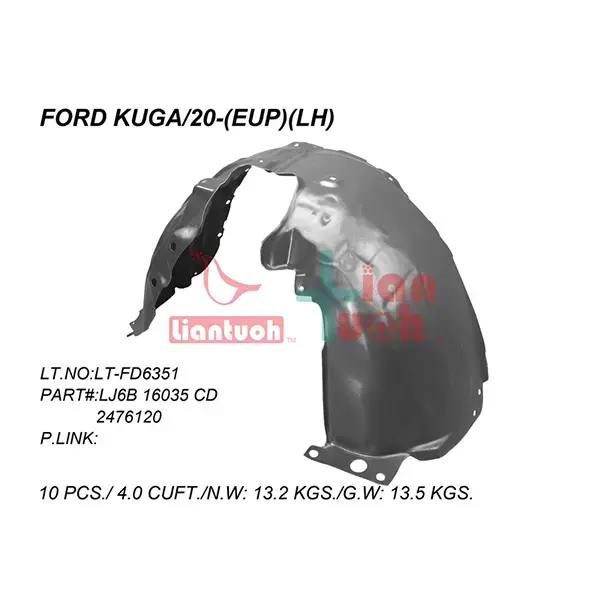 The replacement NSF wing splash guard for the Ford Kuga (2013 onwards) is a high-quality aftermarket part designed to provide a reliable solution for your vehicle's exterior components. This product is specifically manufactured to meet or exceed the original equipment manufacturer's standards, ensuring optimal performance and durability.